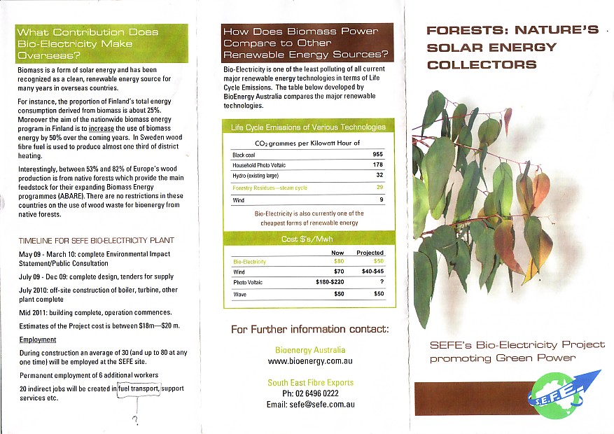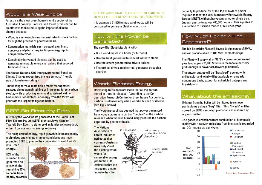 Public Forum at the Bega Valley Shire Council on 26 August 2008 of plans to generate electricity from chipmill mill “waste”.