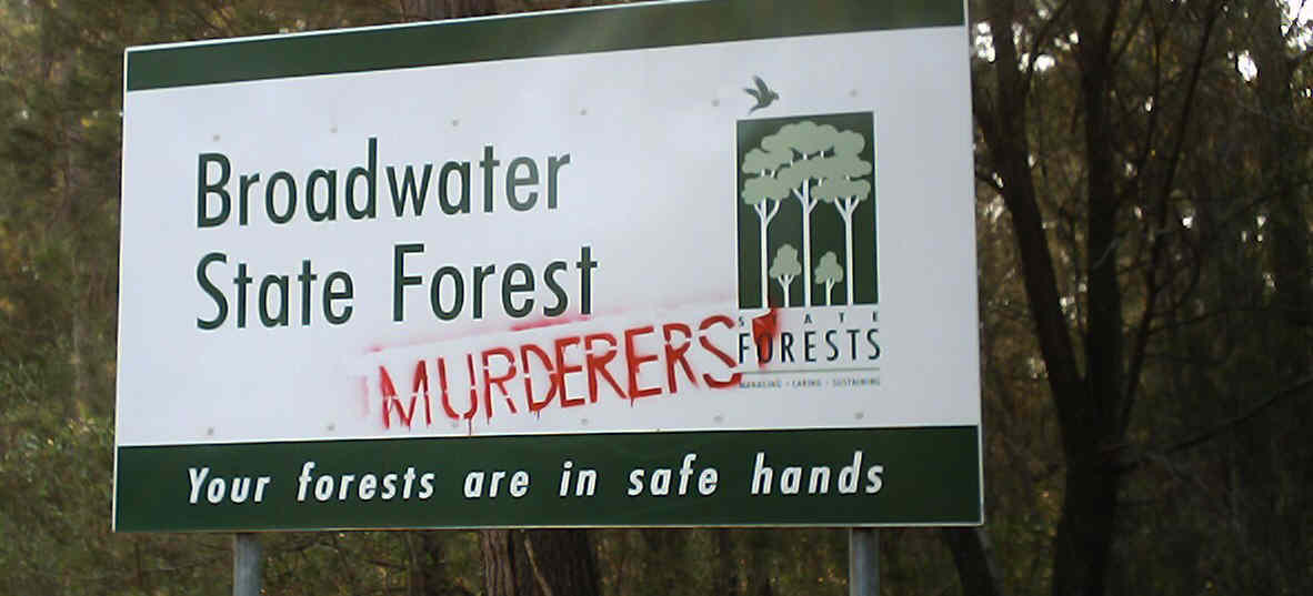 The Forests NSW slogan is: Your forests are in safe hands. Apparently not everyone agrees.